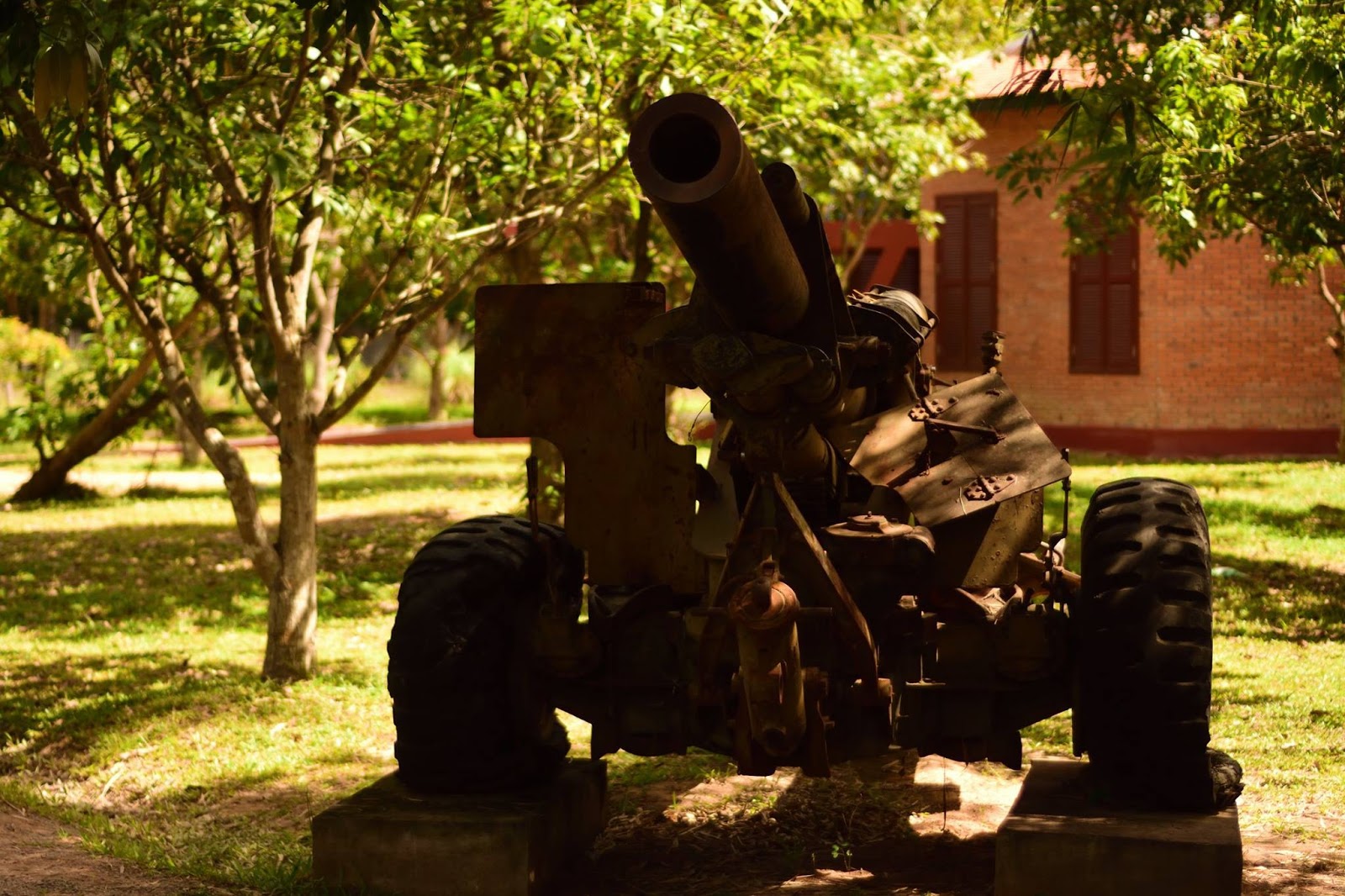 We decided to walk from there to the Bayon temple, which is about 4 Km away. Bayon is also known as the temple of the thousand faces as it's adorned with innumerable faces, both large and small. Each face has a personality of its own with its own individuality. The irregular shape of the Bayon temple is said to represent the Mount Mandara, which was said to be used in the churning of the ocean of milk to extract elixir. There are four causeways which lead into Angkor, one in each of the four directions. Each of them feature carvings of serpents being pulled by demons and the gods. The whole city was designed to represent the legend of Samudra Manthan. In fact, an entire side of Angkor Wat is dedicated to depictions of the legend. We visited Bayon temple and then caught a tuk-tuk to Angkor Wat for about 4 USD. From Angkor Wat we caught another tuk-tuk to the Siem Reap War Museum. This museum contains the weapons used during the time of Pol Pot and the the Khmer Rouge, during the period known as the Cambodian civil war. This ended our day's excursion. The museum was less than a kilometre from Fehi Dhuniye and we walked home after that.